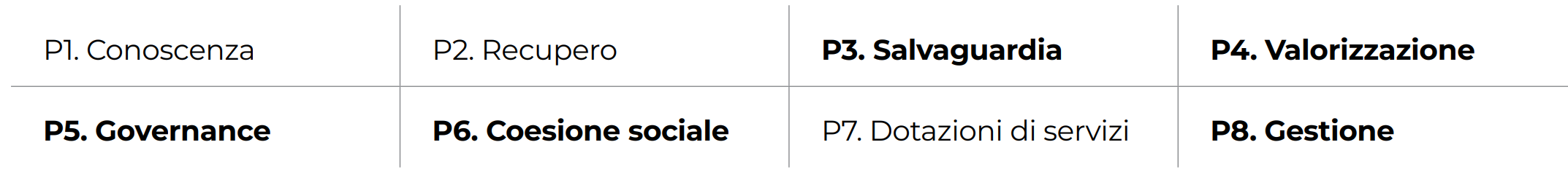 Alla Strategia S1_T1.2 sono sottesi i Principi di rigenerazione REACT indicati in grassetto nell’elenco che segue: